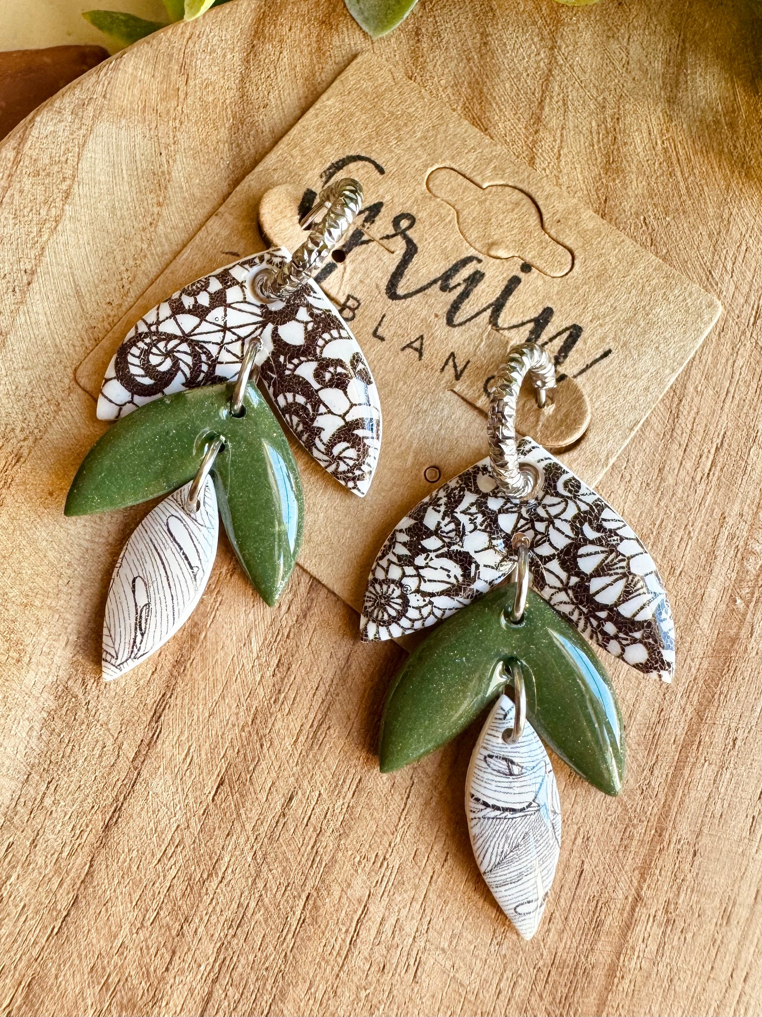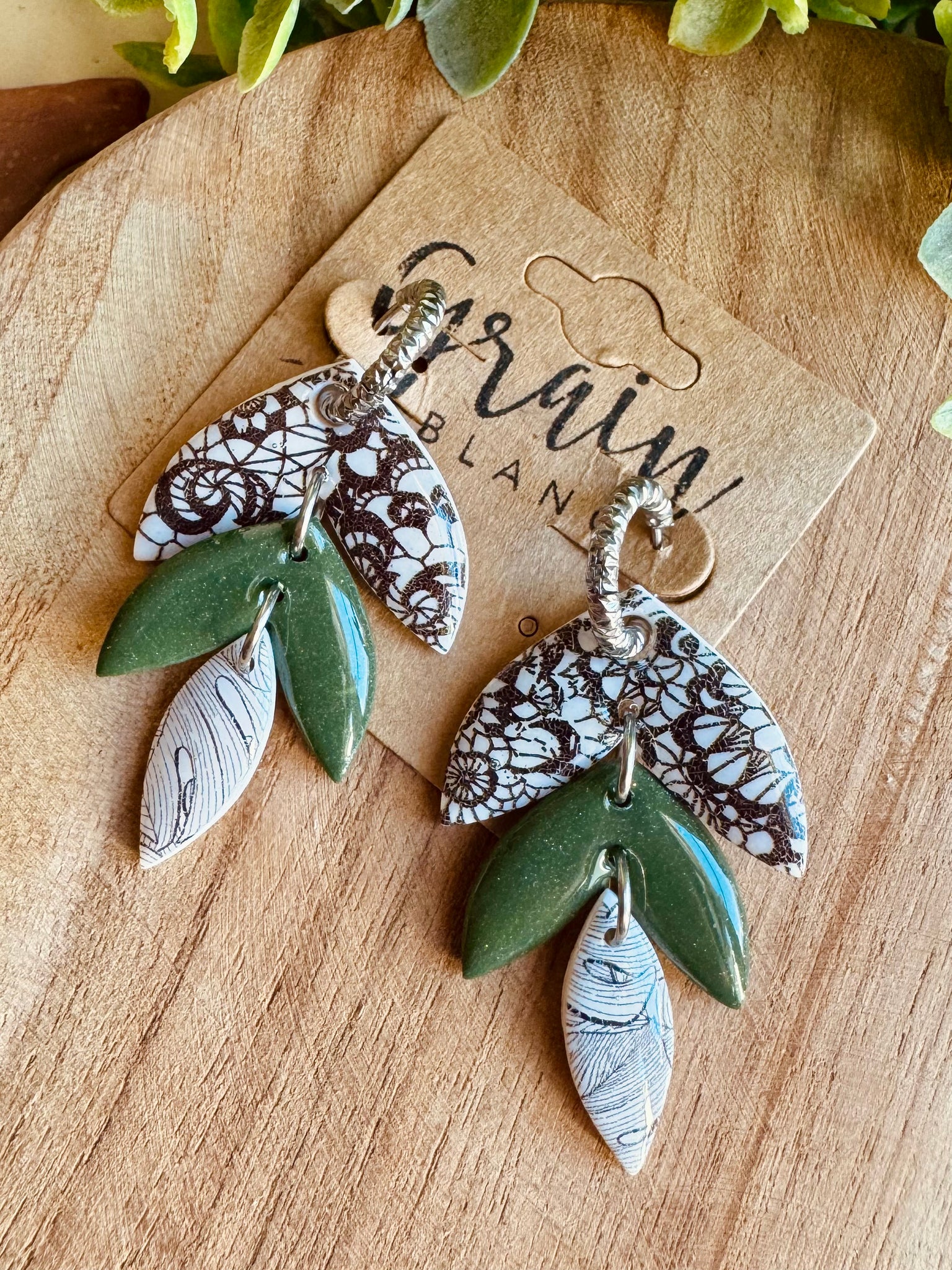 Créoles garnies de pampilles faits à la main en polymère.
