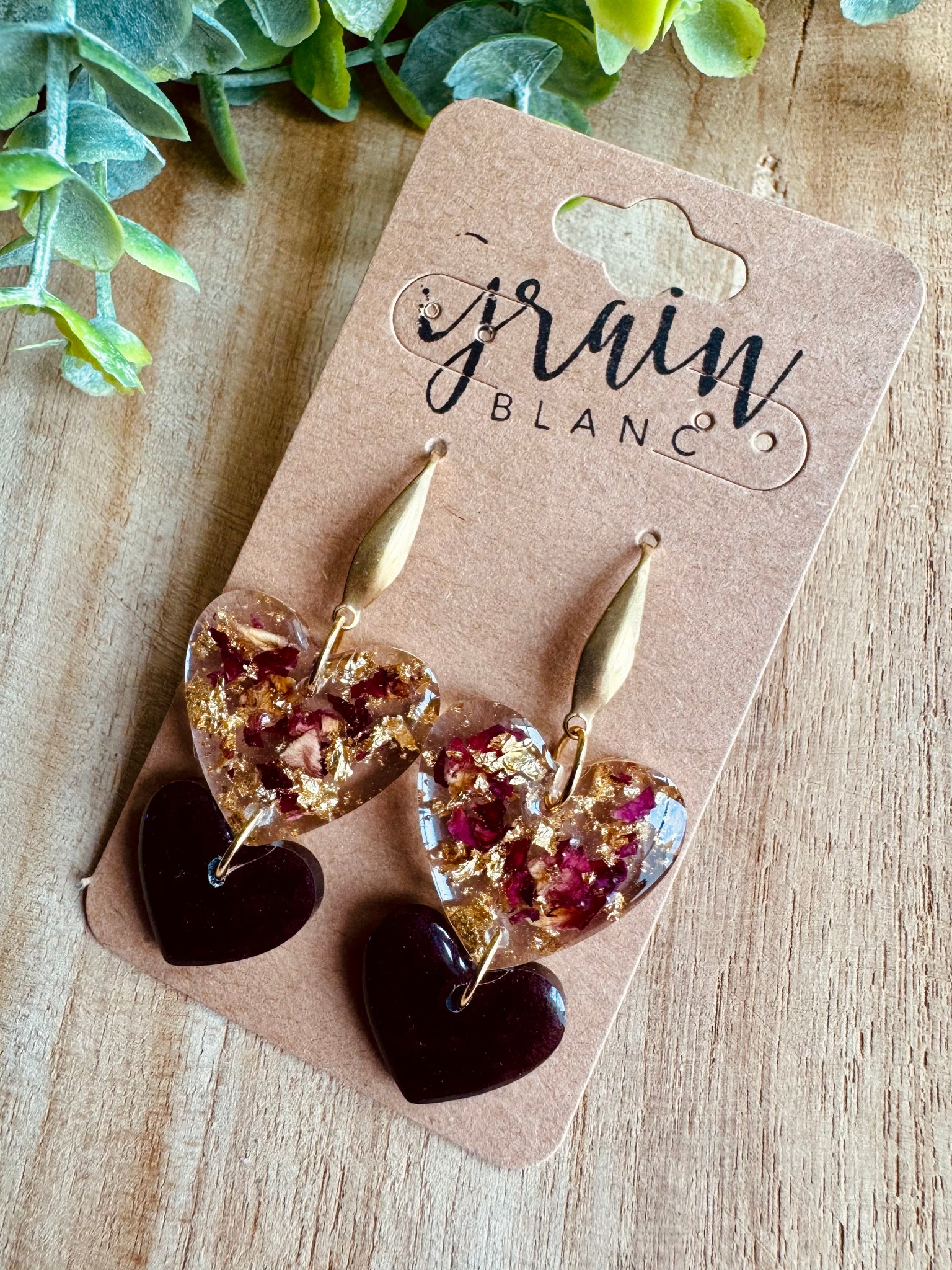 Boucles résine (fleurs séchées Bordeaux et doré)🤍